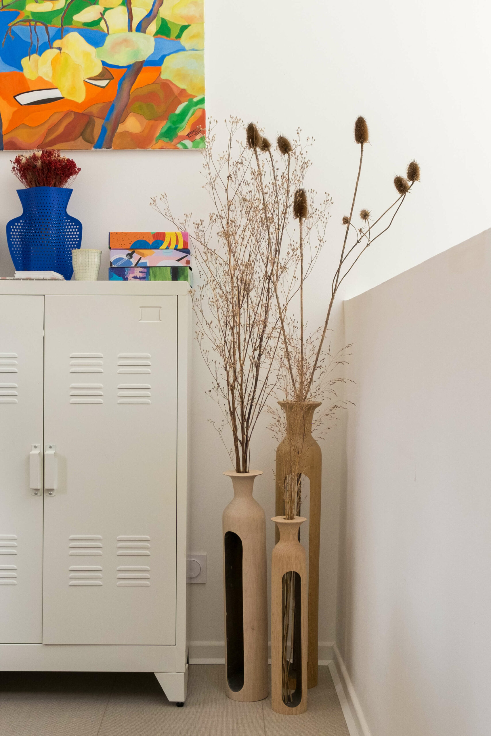 Armoires de rangement La redoute intérieurs. Vases Scheurich, ventilateur Calor chinés. Bettoïas par Alexandre Labruyère. Store tissu Ikea. Lampe Prisunic Danielle Quarante – Monoprix. Tableau Francis Ribault. Puzzles Sulo. Enceinte Urbanears. Cache-pot en papier perforé Octaveo.
